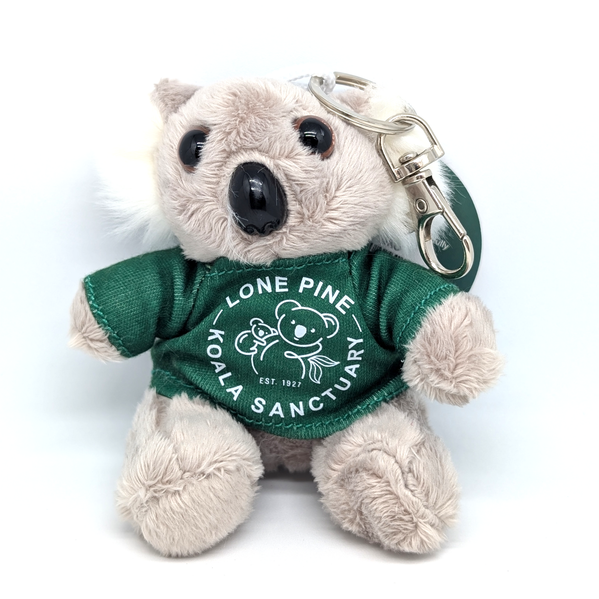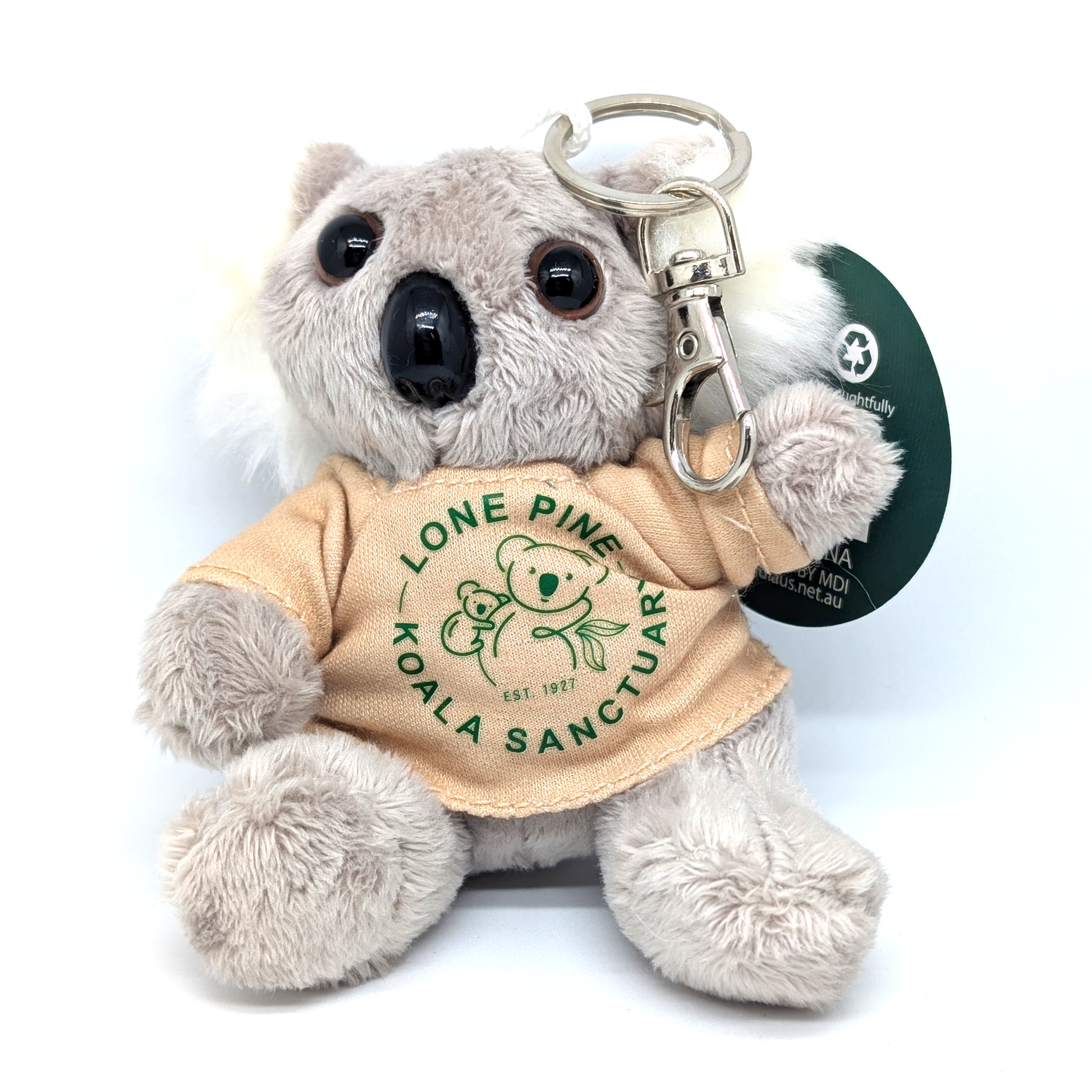 This soft and cuddly koala plush is dressed in a miniature Lone Pine Koala Sanctuary T-shirt, making it the perfect keepsake or gift for animal lovers and sanctuary visitors. Its compact size and sturdy keyring make it ideal for attaching to your keys, backpack, or purse, ensuring your love for koalas is always on display.